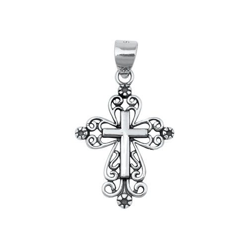 Esta pieza mide 25 mm de largo y tiene un ancho de 17 mm, Dije de plata ley 925 con acabado en rodio pulido.