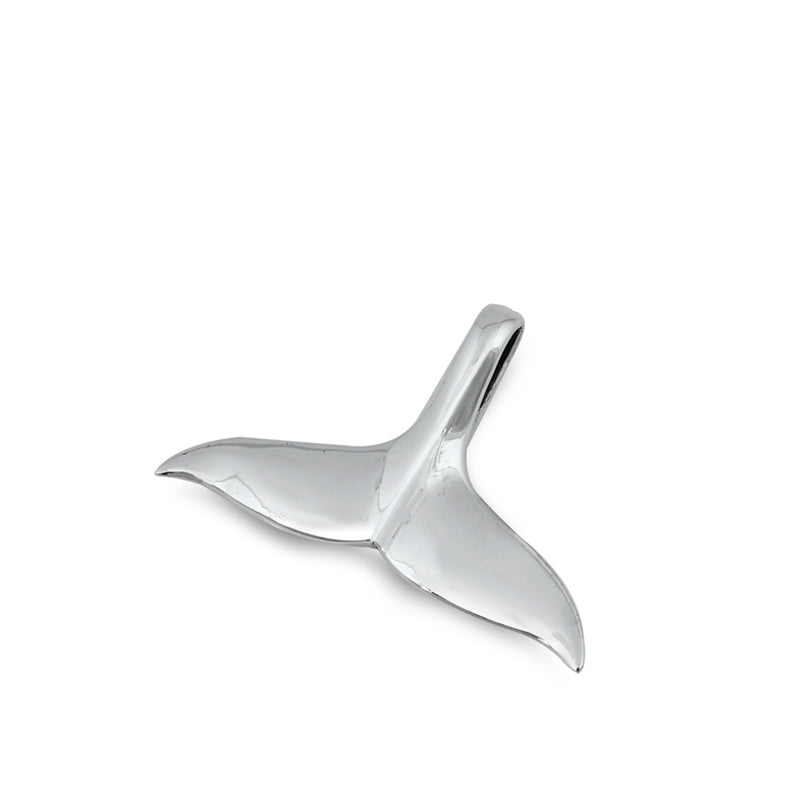 Dije con diseño simple y elegante de cola de ballena. Esta pieza mide 17 mm de largo y tiene un ancho de 20 mm, Dije de plata ley 925 con acabado en rodio pulido.